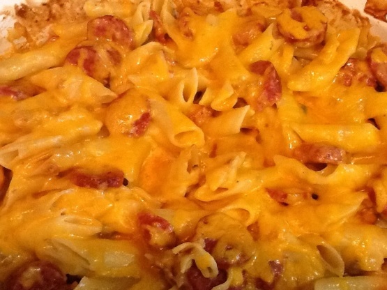 Faites et partagez cette recette de Penne au four et de Kielbasa cuite au four.