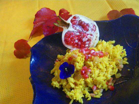 Faites et partagez cette recette de riz pilaf à la grenade et à la grenade.