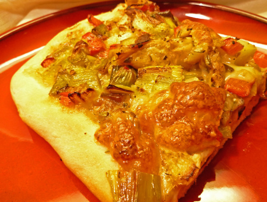 Pizza au poulet rôti et aux poireaux
