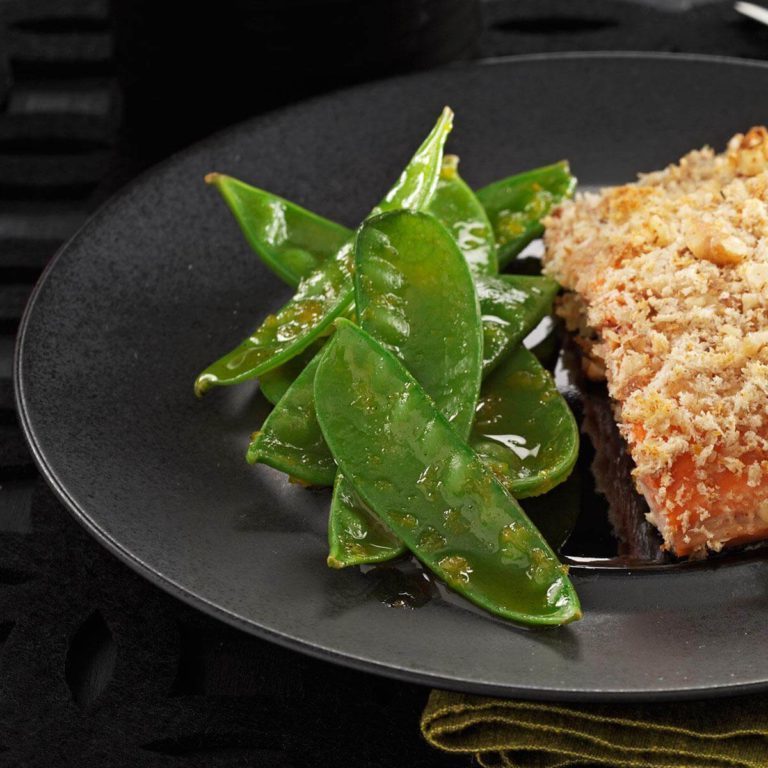 Kathleen Bailey, de Chester Springs, en Pennsylvanie, transforme les pois mange-tout croustillants en un mélange spécial avec une belle sauce au miel et à l'orange. "J'aime servir des légumes frais", dit-elle, "surtout lorsque je peux préparer une sauce comme celle-ci qui semble rajouter. la chaleur du soleil "