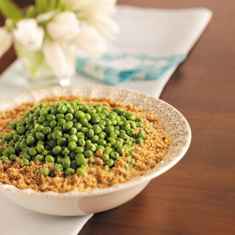 Quand j'étais petite, ma mère avait l'habitude d'habiller les pois avec des miettes de biscuits au beurre et cela reste l'un de mes plats préférés. On peut remplacer n'importe quel type de biscuits salés, y compris les variétés aromatisées aux herbes. - Sue Gronholz, Beaver Dam, Wisconsin