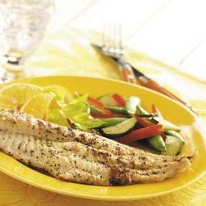Égouttez et jetez la marinade.Saupoudrez le poisson de sel et de poivre citron.A l'aide d'une pince à long manche, humidifiez une serviette en papier avec de l'huile de cuisson et enduisez légèrement le support de gril.Griller, pêcher, à couvert, à feu moyen ou griller 4 po chauffer de 4 à 6 minutes de chaque côté ou jusqu'à ce que le poisson se défasse facilement à la fourchette.