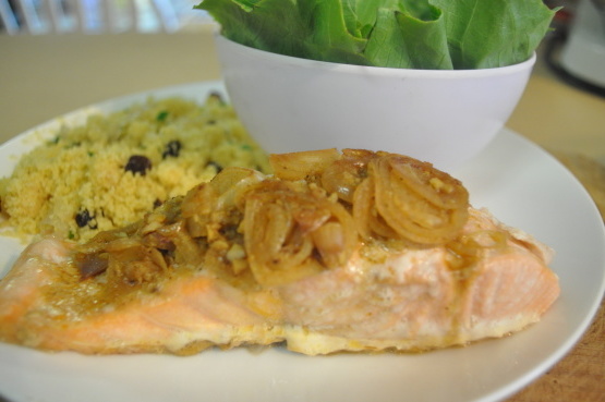 Placez 1 filet de poisson sur chaque morceau d’aluminium près du pli.Basculez uniformément avec le mélange oignon/sauce.Repliez les deux moitiés restantes du cœur des sceller.Tournez bien l'extrémité pour sceller. Cuire au four à 450 ° C pendant 20 minutes ou jusqu'à ce que le poisson s'écaille facilement lorsque testé à la fourchette.