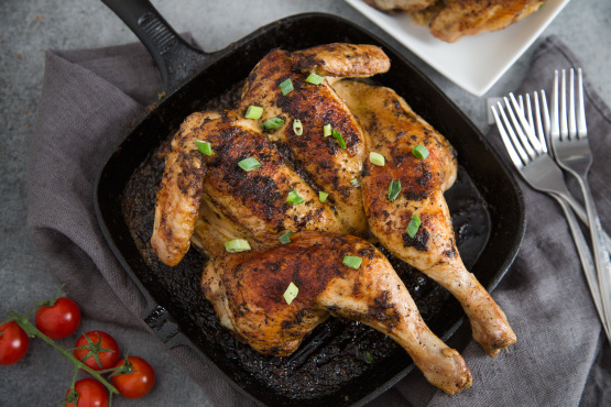 Au Maroc, les cuisiniers frottent les poulets (les poussins, environ 400 grammes sont préférables) avec une pâte aromatique, comme celle-ci, avant de les faire griller. Du magazine Saveur.Le temps de marinage n’est pas inclus dans le temps de cuisson.