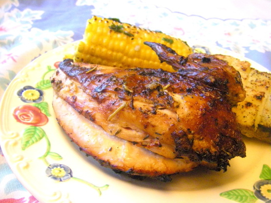 C’est un moyen TRÈS facile de faire du poulet, il ressort humide et délicieux! Le romarin frais et le zeste du citron lui donnent vraiment un bon goût de printemps.J’utilise plus d’ail, 4 à 5 clous de girofle.J'ai aussi mis un peu de pâte sous la peau.La recette demande 2 poêles en fonte, mais si vous ne pas avoir une deuxième poêle en fonte, utilisez une casserole ordinaire et alourdissez-la avec 2 lourdes canettes.J'ai aussi mon boucher prendre l'épine dorsale pour moi. (paresseux moi LOL) Réseau, cuisiner pour de vrai, Sunny Anderson.