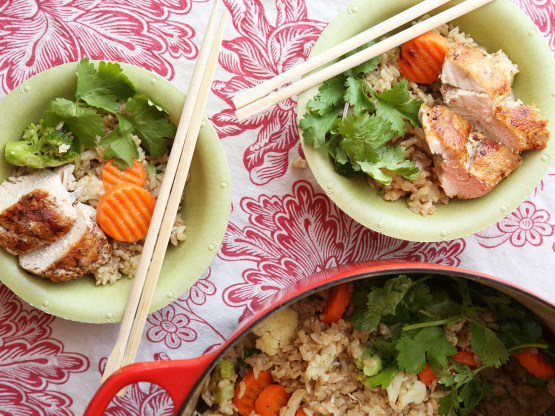 55 minRiz brunriz, stock de poulet, beurre, sel poivre, jus d'orange, onion, persil,riz brun à l'orange -