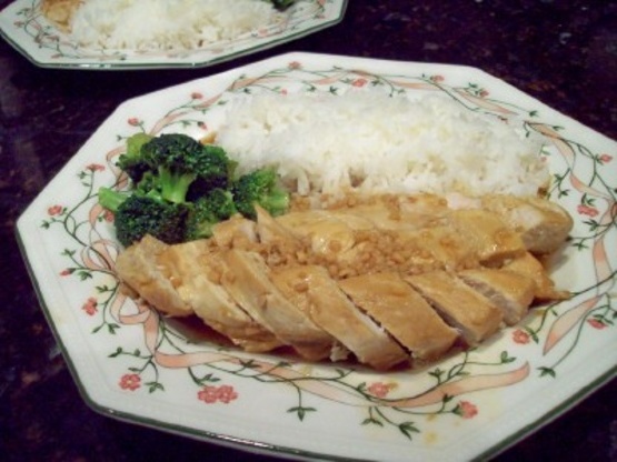 Je coupe mon poulet cuit en biais et je sers avec une partie de la sauce réduite versée sur le dessus. Si vous préférez une sauce plus épaisse, vous pouvez ajouter un peu de fécule de maïs mélangée à un peu d'eau à la sauce après avoir enlevé le poulet. , laissez la sauce bouillir et épaissir (seulement quelques minutes).