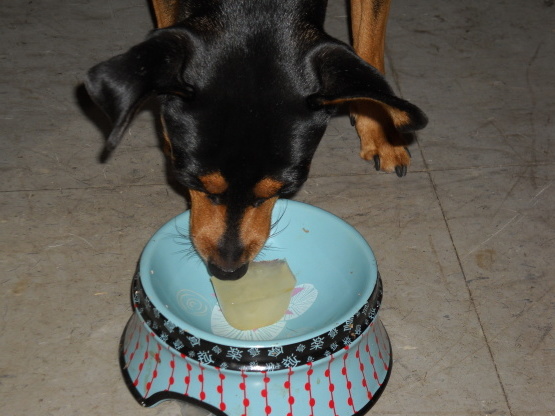 For a hot weather treat, place one in your dog's dish.S/he is sure to love it! Our dog sure did - she loved it so much she always perks up when she opens the freezer.I hope you - well, your dog - sure loves it!