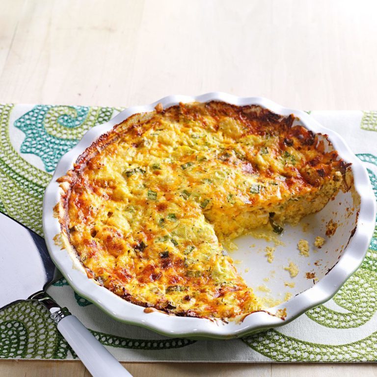 La viande de crabe, les courgettes, le fromage cheddar et les oignons verts parfument cette savoureuse quiche sans croûte. Nancy Romero, Clarkston, Washington