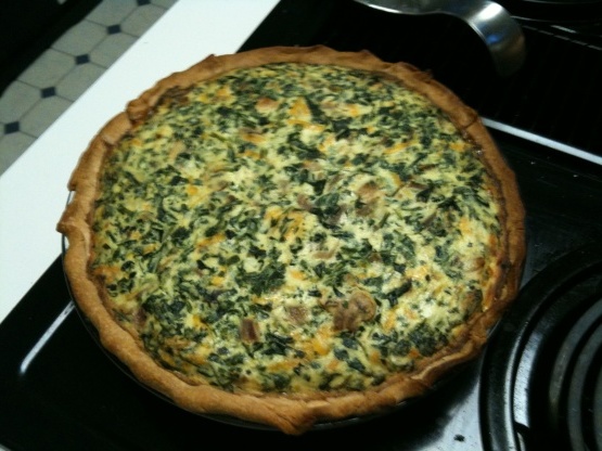 Faire sauter l'oignon, l'ail et les champignons avec un aérosol de cuisson et incorporer les épinards, le sel, la noix de muscade et le poivre noir.