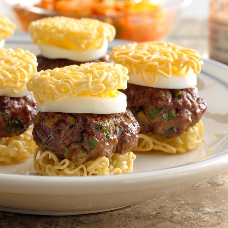 J'ai grandi en mangeant des ramen et j'adore ça à ce jour. Ces curseurs sont une variante amusante de mon type préféré de soupe aux nouilles, qui est garnie de tranches d'œufs et de kimchi. — Julie Teramoto, Los Angeles, Californie