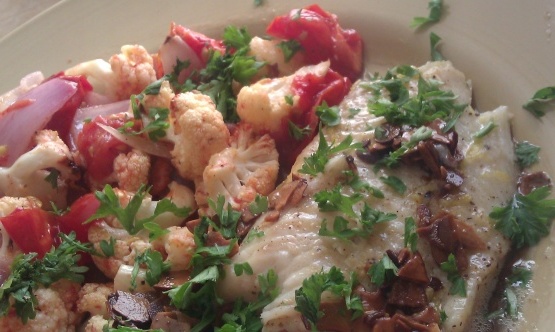 À vos marques, prêt, cuisinez! Les filets Tilapia sont simplement assaisonnés de sel, de poivre et de zeste de citron, puis emballés dans du papier aluminium pour la cuisson.Une fois terminés, ils sont garnis d'un beurre bruni et d'une sauce aux amandes avec du jus de citron fraîchement pressé.Il est associé Des fleurons de chou-fleur rôtis, des quartiers d'oignon rouge et des tomates aux raisins pour accompagner un plat sucré. Servir avec du riz ou, pour une option à faible teneur en glucides, une salade verte.