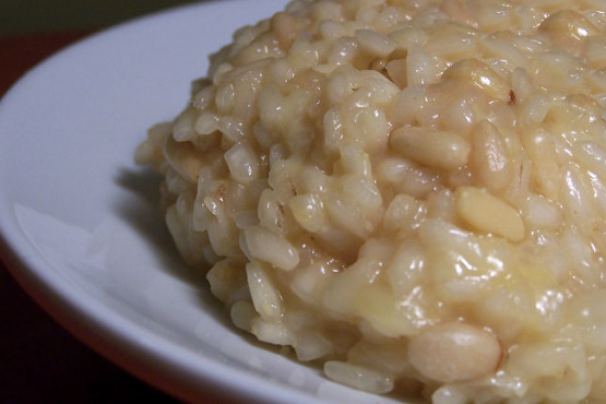 Remarque: les ingrédients ont été corrigés afin de refléter bon nombre des commentaires des critiques selon lesquels les noix de pécan étaient répertoriées dans les ingrédients, mais les pignons étaient mentionnés dans les instructions. Cela fonctionne très bien.Un risotto au fromage crémeux. préparer, et se marie bien avec un plat cuit au four, car il a besoin d'attention pendant la cuisson.Contrairement à ce que certains disent, le risotto n'a pas besoin d'être remué constamment, mais il doit être remué fréquemment. Vous ne voulez pas le laisser aller plus d'une minute à peu près sans agitation.L'utilisation d'un bouillon de poulet faible en sodium est importante, car le fromage peut être salé.Ceci était une inscription au concours pour le SRC 11.