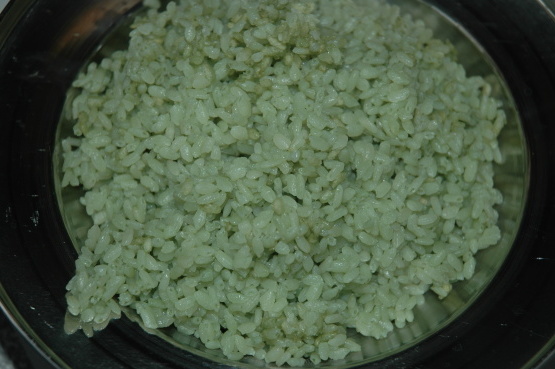 Riz chinois à grain court avec une saveur semblable au thé vert.Bon avec des salades d'été et une cuisine asiatique.Avec une texture un peu collante.Très coloré et aromatique.