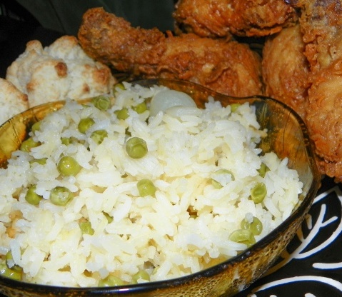 J'utilise le riz Jasmati et je le fais pour qu'il soit collant, parce que nous l'aimons ainsi et qu'il est plus facile pour mon mari de le manger.Il souffre de paralysie cérébrale et à moins que le riz ne colle ensemble ... il deviendra en suspension dans l'air! Je fais du riz au micro-ondes souvent parce que c'est rapide et facile et que je peux utiliser mon four pour d'autres choses. Une fois le riz cuit, j'ai ajouté des petits pois surgelés et des oignons perlés et je l'ai mis au four micro-ondes pendant trois minutes avec de la margarine. Vous pouvez bien sûr cuisiner le riz à votre guise et utiliser celui que vous préférez.