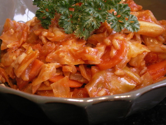 De Vegan Vittles de Joanne Stepaniak.Il s'agit d'un plat savoureux, simple et copieux.Je n'avais pas de riz brun à cuisson rapide, je venais d'utiliser du riz brun cuit à la place - environ une tasse et demie - et le résultat fut parfait. doublé la sauce tomate parce que je voulais l'utiliser et c'était délicieux.Vous pouvez vraiment jouer avec cette recette.Je peux ajouter un peu de viande hachée pas de viande la prochaine fois.