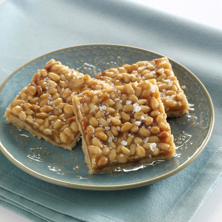 «J’ai une histoire d’amour avec les pignons de pin et j’ai décidé de les utiliser à la place des noix de pécan dans la recette d’un bar au caramel d’un ami. Je pense que les résultats vous plairont autant que ceux de ma famille.