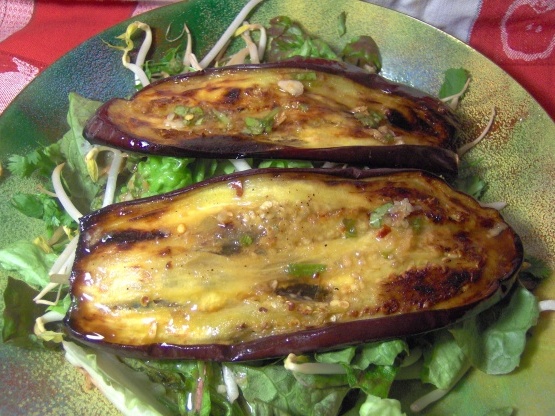 Salade d'aubergines avec vinaigrette au gingembre et miso