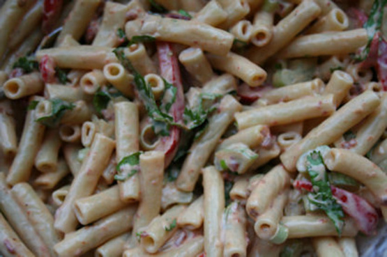 Un magasin local d’aliments naturels vend ce plat dans sa charcuterie. Bien sûr, il n’allait pas lui remettre la recette, mais j’en suis sorti à partir de la liste des ingrédients.Assurez-vous d’utiliser la Vegenaise originale, elle a le goût réel. poivrons à la chaleur que vous aimez. Comme la recette est debout, je dirais qu'il a un piquant moyen.