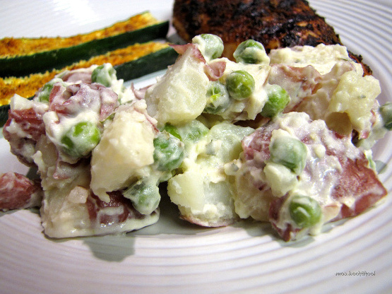 Faites et partagez cette recette de Salade crémeuse de petits pois et pommes de terre à partir de.