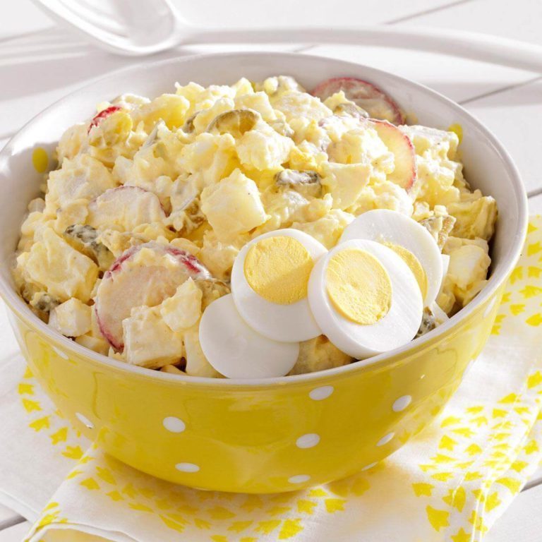 35 minSalades De Pommes De Terre Crémeusespatates, pétrole, jus de cornichon à l'aneth, onion, des radis, PANSEMENT, Mayonnaise, Lait, moutarde, jus de cornichon à l'aneth, sucre, sel, poivre, poudre de paprika,salade de pommes de terre pique-nique -