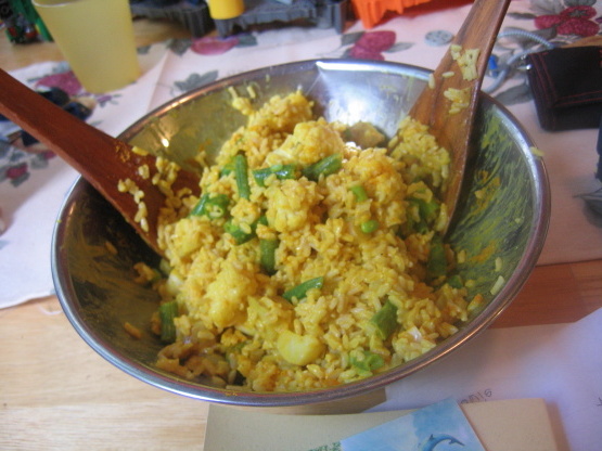 Faites cuire le riz dans de l'eau salée en abondance, comme pour les pâtes, jusqu'à ce qu'il soit cuit; le blanc prendra 10-15 minutes, le brun 30 minutes ou plus. Égoutter, rincer à l'eau froide, égoutter à nouveau, puis mélanger avec les légumes dans un grand bol.