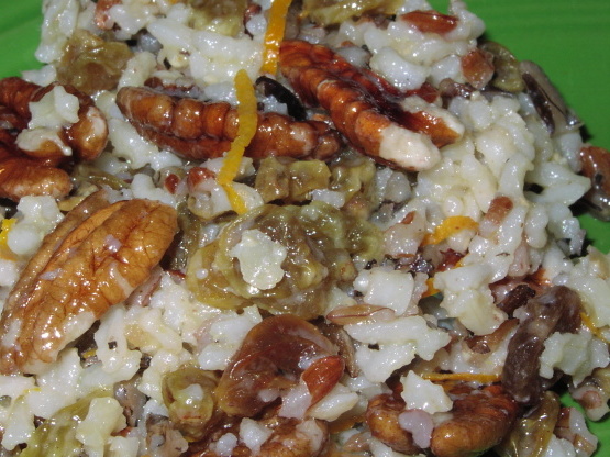 190 minRizriz, carottes, onion, pétrole, vinaigre de vin, sel, cerises, noix de pécan, mon chéri,salade de riz sauvage colorée -