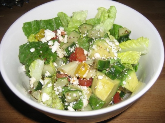 15 minLaitueslaitue pommée, concombres de préférence concombre, onion, tomates, paprika, céleri, persil, menthe, basilic, sel, poivre, pétrole, gousse d'ail, vinaigre de vin, jus de citron, estragon, fromage, Olives,salade du jardin - style méditerranéen -