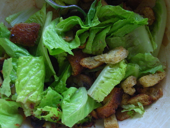 Répartir dans 4 assiettes à salade fraîches et parsemer de croûtons.