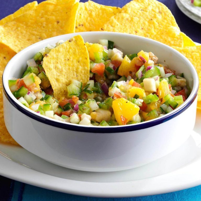 25 minRecette de salsa de fruitsconcombre, poivre, tomates, onion, orange nombril segmenté, jus de citron, coriandre, persil, gousse d'ail, sel, poivre, poivre, pêche, banane,salsa de fruits au concombre