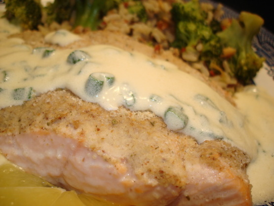 Saumon au raifort cuit au four avec sauce au beurre de ciboulette chardonnay