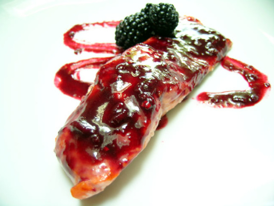 Saumon grillé au coulis de mûres et de cabernet