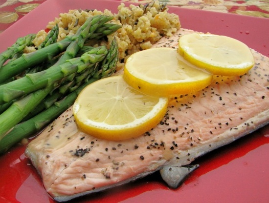 30 minTrès faible teneur en glucidesfilet de saumon, vin de pinot noir, poivre selon votre, racine de gingembre, Ail, beurre,saumon à la sauce au vin rouge épicé -