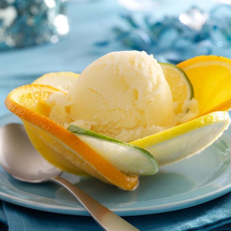 Ajoutez une touche de couleur à votre table avec ce sorbet à l'orange.Le goût rafraîchissant à l'orange de ce délice glacé conviendrait parfaitement comme dessert ou comme nettoyant pour le palais entre les plats. — Taste of Home Test Kitchen