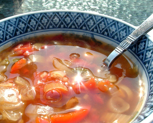 Il y a plusieurs soupes arc-en-ciel sur Recipezaar, mais aucune ne ressemble à celle-ci que j'ai pu trouver. C'était une sorte de nettoyer la soupe au réfrigérateur, mais elle peut être facilement reproduite. Nous avons apprécié et j'espère que vous le ferez aussi. C’est une soupe très facile et rapide à préparer. Ajoutez plus d’épices si vous le souhaitez.