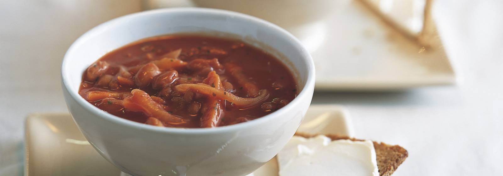 Soupe de haricots bruns à la sauce tomate et légumes.
