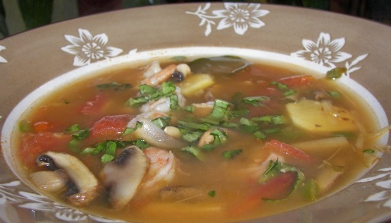 Vous ne croirez pas à quel point c'est facile et bon. Essayez-le et vous ne pourrez peut-être plus jamais manger une soupe aux crevettes dans un restaurant thaïlandais. C'est un mélange de deux recettes d'un très bon livre de cuisine thaïlandais, adapté pour être utilisé plus facilement- trouver des ingrédients (comme recommandé dans le livre, le gingembre au lieu de galanga, le jus de citron vert au lieu de feuilles de citron vert) et simplifié un peu.Vous pouvez le faire aussi avec de la poitrine émincée au lieu de crevettes si vous ajoutez le poulet à peu près au même moment Ajoutez les champignons et les tomates et faites cuire le tout un peu plus longtemps.