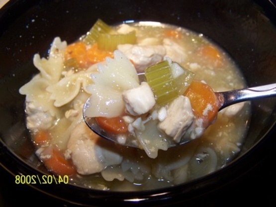 C’est génial lorsque vous avez un rhume - ou à d’autres moments aussi. Si vous n’aimez pas cela trop épicé, réduisez la quantité de piment de Cayenne.La salsa est définitivement facultative.Vous pouvez modifier la recette a beaucoup en changeant la combinaison de légumes. Je fais cuire le poulet au micro-ondes parce que c'est rapide et facile.J'utilise le bouillon de poulet en conserve et hache les légumes frais, bien que vous puissiez acheter les légumes congelés.J'achète des pots d'ail émincé que vous aurez sous la main pour une autre cuisson. Donne un pot de bonne taille.