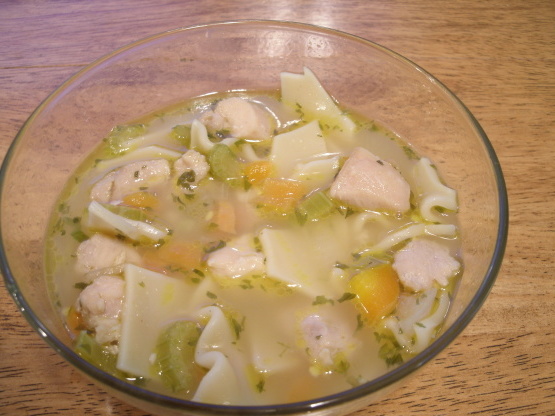 45 minSoupe clairepoulet en, pétrole, onion, bouillon, poivre, carottes, céleri, pâtes en forme de trompette,soupe au poulet rôti -