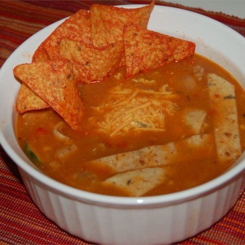 Ajoutez la viande, le maïs et le fromage réservés à la soupe et mélangez bien. Enfin, ajoutez les lanières de tortilla et laissez chauffer.