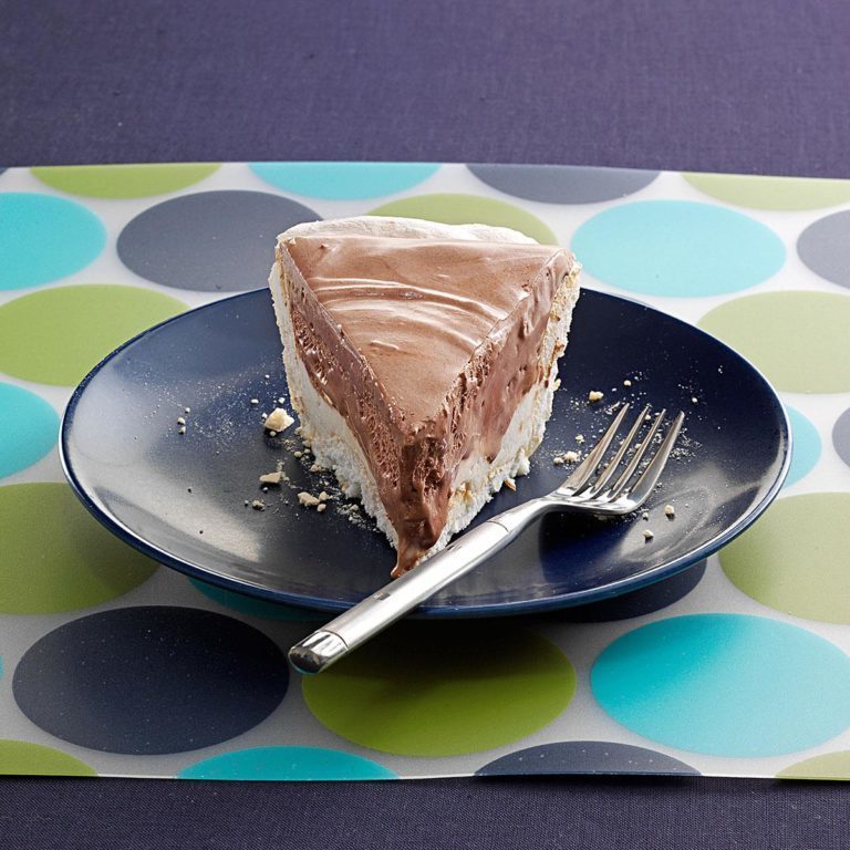 Étendre la crème glacée dans la coque de la meringue. Incorporer la garniture fouettée dans la sauce au chocolat refroidie.Étaler sur la couche de crème glacée; Couvrir et congeler jusqu'à ce qu'il soit ferme.