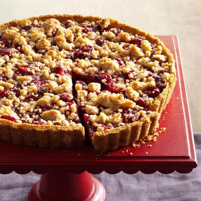 Amener le mélange de canneberges à ébullition en remuant constamment.Ajouter les tranches d'orange; chauffer à travers.Pour en croûte; saupoudrer de garniture.Cuire au four pendant 10-15 minutes ou jusqu'à ce que la garniture soit dorée.Froidir sur une grille.