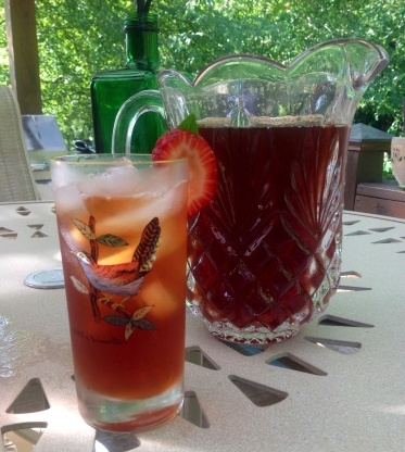 Ajoutez le sirop de fraise au basilic au thé préparé froid ou froid.