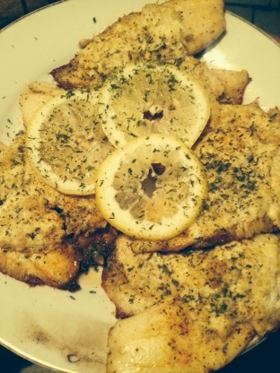 30 minTilapiabeurre, jus de citron, gousse d'ail, bouillon, flocons de persil, viande d'assaisonnement aromat, basilic, poudre de paprika, du vin, filets de tilapia,beurre au citron pour poisson -