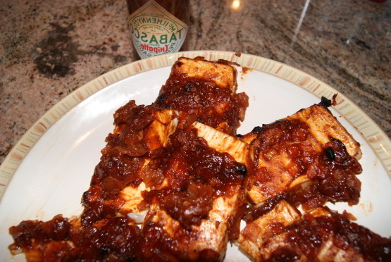 Trouvé sur /2009/09/chipotle-barbecued-tofu.html et mis ici pour assurer sa sécurité. La photo montrait qu'il était servi sur du couscous de blé entier aromatisé au safran et à un assortiment d'herbes fraîches et de piment émincé. (Le 340 de tofu a été mis à jour, passant de 794 à 397 grammes)