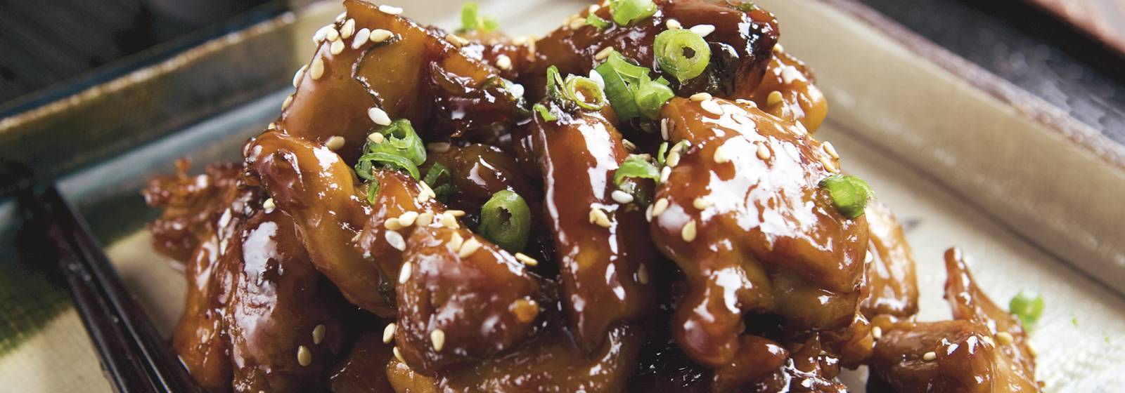 Tori teriyaki japonais: filet de poulet à la sauce soja avec gingembre et graines de sésame.