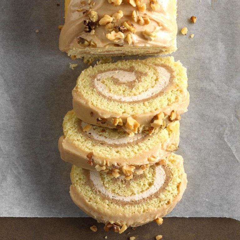 Pour la garniture, battre le fromage à la crème et le beurre jusqu'à l'obtention d'une consistance crémeuse. Incorporer le sucre à glacer et la cannelle; ajouter progressivement la crème jusqu'à ce que le mélange atteigne une consistance pouvant être tartinée.Répaissir par-dessus le mélange de cassonade.Si désiré, saupoudrer de noix .Rouiller à nouveau, sans serviette; Coupez les extrémités si nécessaire. Placez-les sur un plat, couture vers le bas.