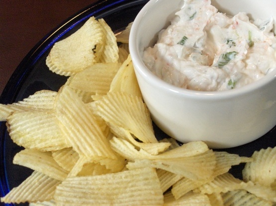 Incorporer les crevettes et réfrigérer si possible une heure avant de servir. Servir avec des croustilles.