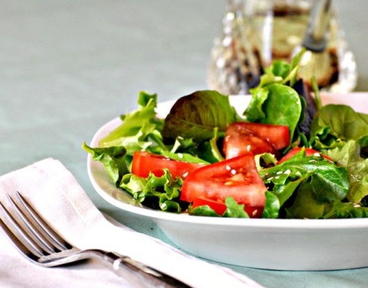 Une salade de roquette, de tomates cerises et de graines de sésame