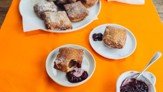 Faites cuire les morceaux de pâte dans l'huile chauffée, de préférence un à la fois, jusqu'à ce qu'ils soient gonflés et dorés. Retirez de l'huile à l'aide d'un ustensile entièrement en métal.